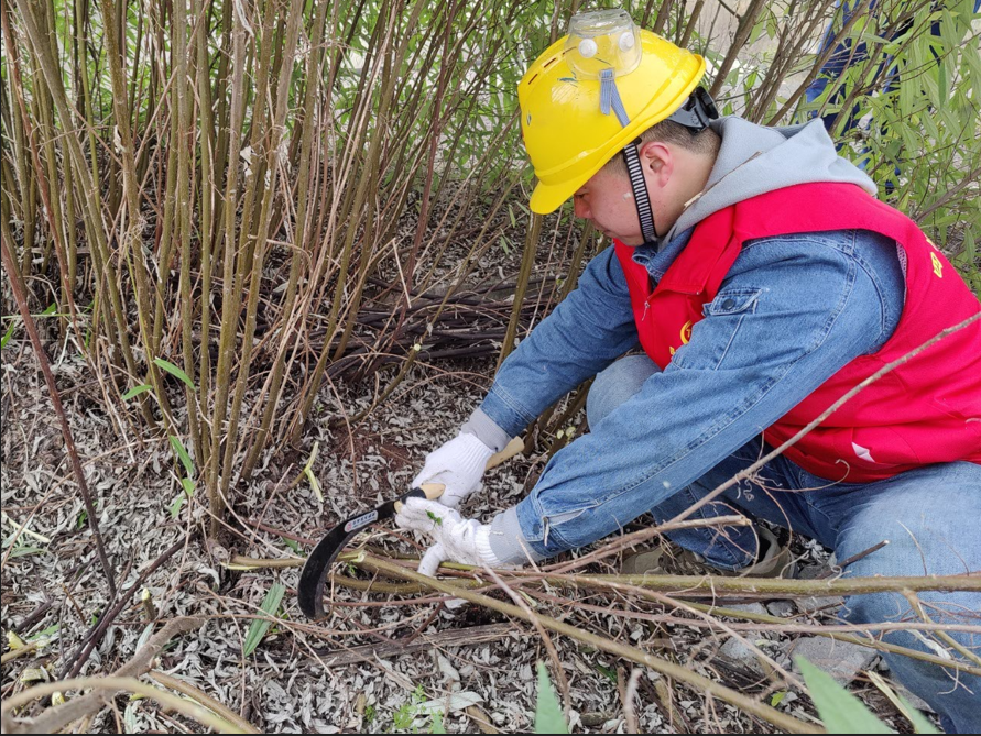 勞動(dòng)中,大家擼起袖子,手拿鐮刀,對(duì)綠化帶里的雜草進(jìn)行清理。雖然雜草叢生、根系牢固,但志愿者個(gè)個(gè)奮勇爭先、干勁十足,不到一會(huì)兒,綠化帶中的雜草、雜物被一一清理干凈,周圍環(huán)境煥然一新。